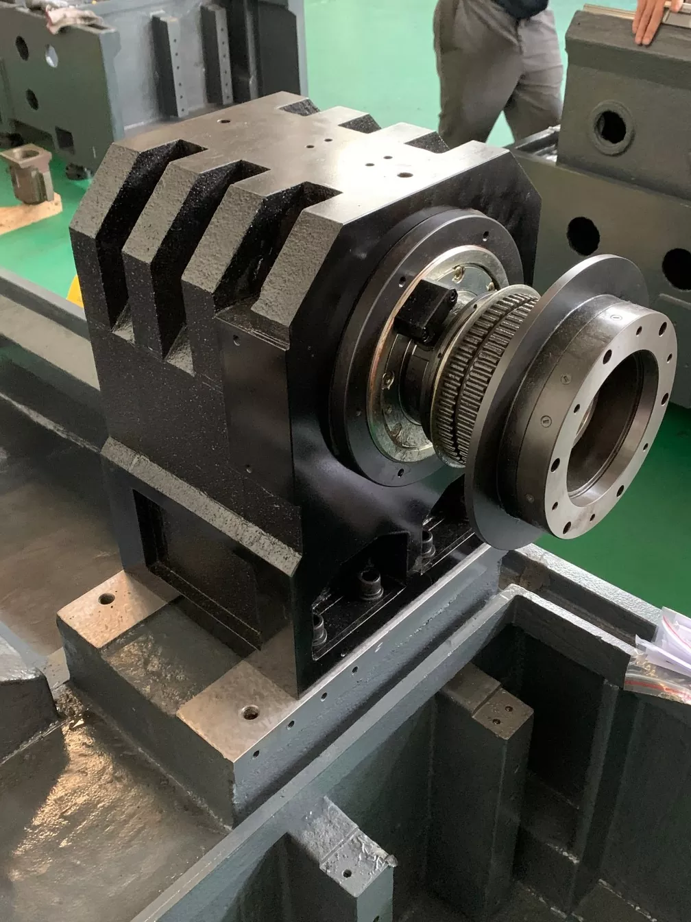 Os vretena C je opremljena z magnetnim kodirjem z visoko ločljivostjo, kar omogoča neprekinjeno indeksiranje (z natančnostjo indeksiranja do 0,01 stopinj). Koaksično je sestavljen s strojnim strojem, da se zagotovi natančnost pozicioniranja in visoka zanesljivost osi C.